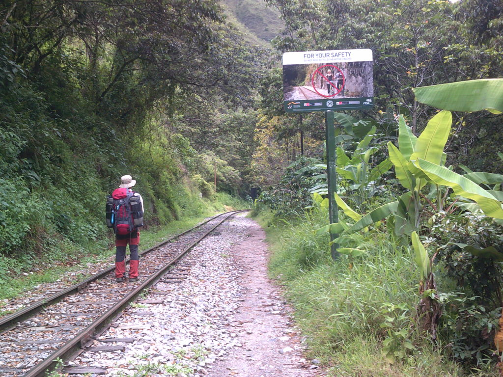 To go to machu Picchu we first had to go to Hidroelectrica (yes it’s a water power plant). Since our feet hurt a lot we just took a taxi. From there we had to walk 2,5 hours alongside train tracks to reach the small city Aguas Calientes. Which has hotsprings too … the catch? They are so dirty that they shouldn’t be used by tourist’s. Along the train tracks there are some small restaurants that offer food and drinks, since most of the people walk to Aguas Calientes instead of taking the very expensive train.